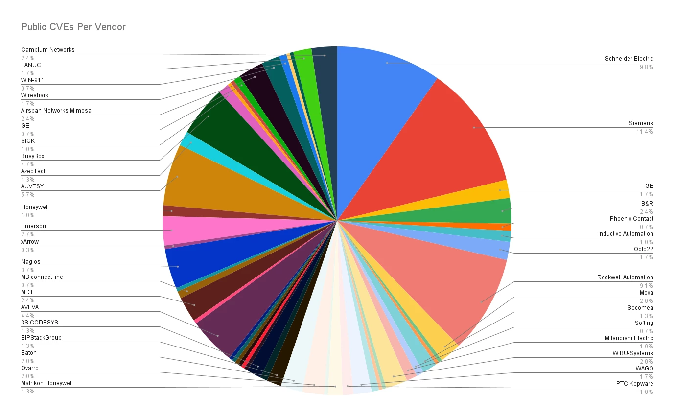 Team82's experience with disclosures is extensive. Since our inception, we've disclosed more than 300 vulnerabilities to more than 50 affected vendors within the XIoT domains. The chart below illustrates the percentage of vulnerabilities disclosed to each affected vendor.