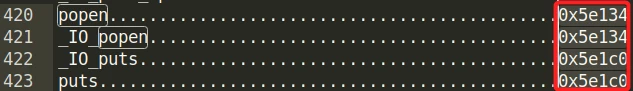 It is important to note that this is useful due to the fact that the shared library code gets loaded aligned according to their static code location relative to the base of the segment, meaning that we can calculate prior to our exploit implementation the offset between our target popen function and an already present function.