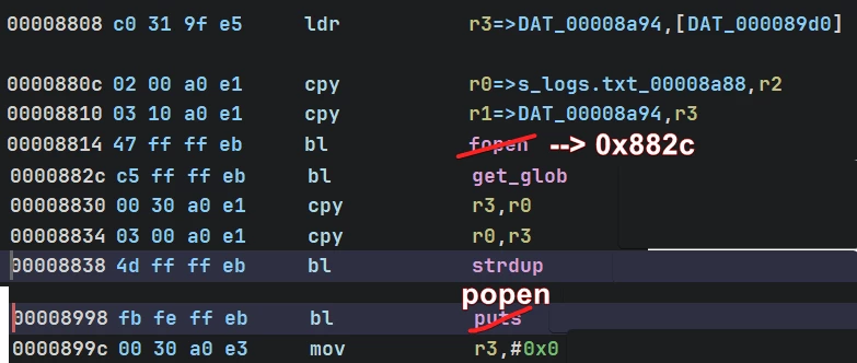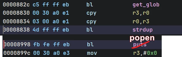 By doing so we make the get_glob method return our own shell command payload string pointer into register R0.