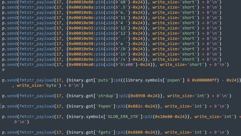 We developed a full-chain remote code execution on the target system by leveraging a pre-authenticated format-string vulnerability. This allowed us to gain a write-what-where primitive, which was then used to overwrite Global Offset Table (GOT) entries.
