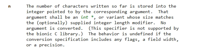 To utilize this technique, we need to have our controlled format string %n specifiers referencing a pointer passed as an argument that we control. This is possible by using the $ format specifier together with the n format specifier to specify the index of the target parameter to be overwritten.