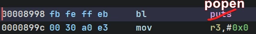 • We partially overwrite the GOT entry for puts least significant byte to the least significant byte of the relative address of popen. remember that they are just adjacent enough so that they are sitting in the same alignment chunk. Making our overwrite perfect to translate a puts into popen.