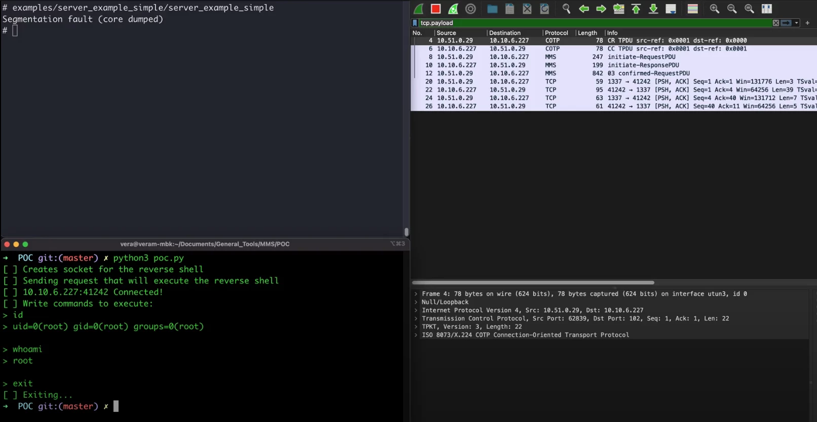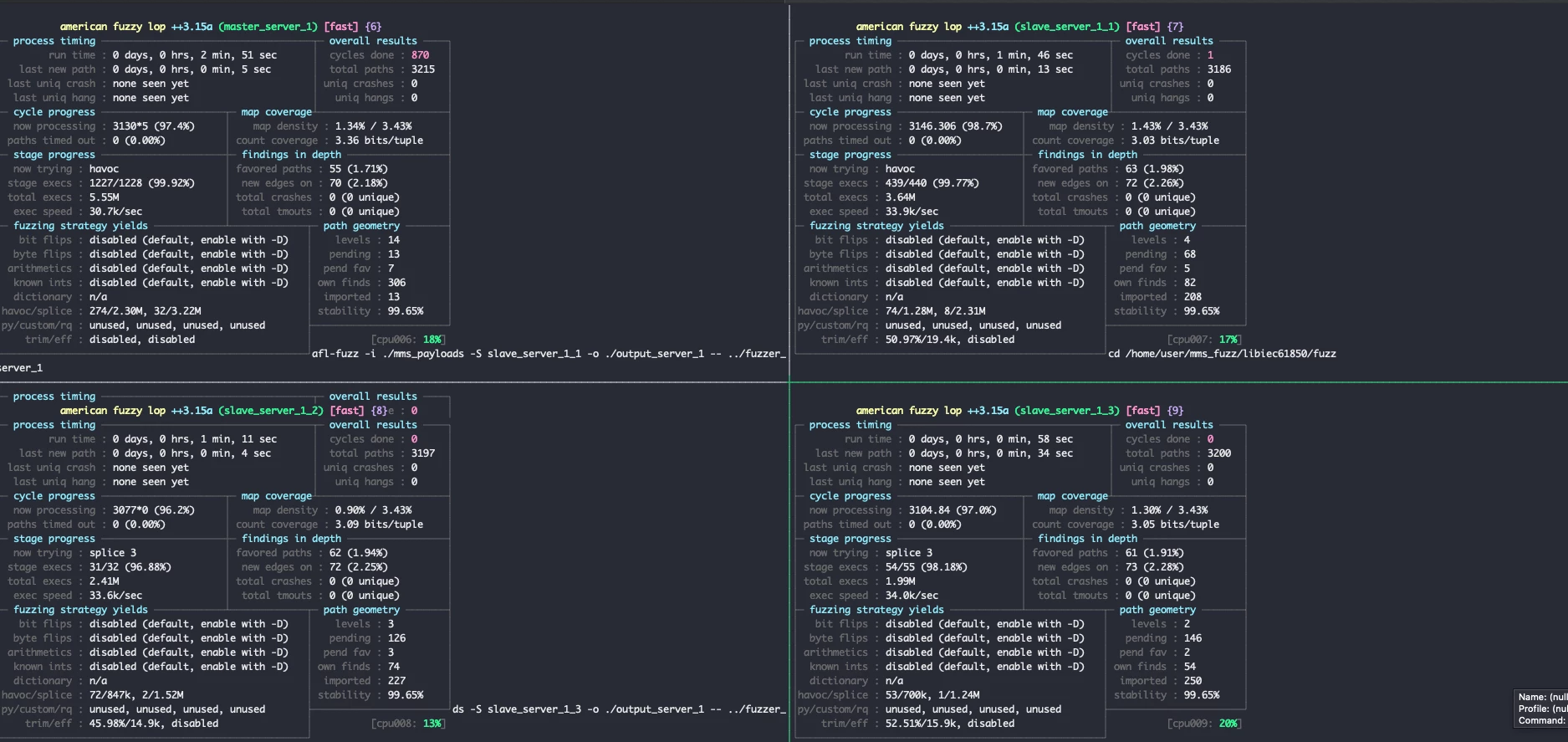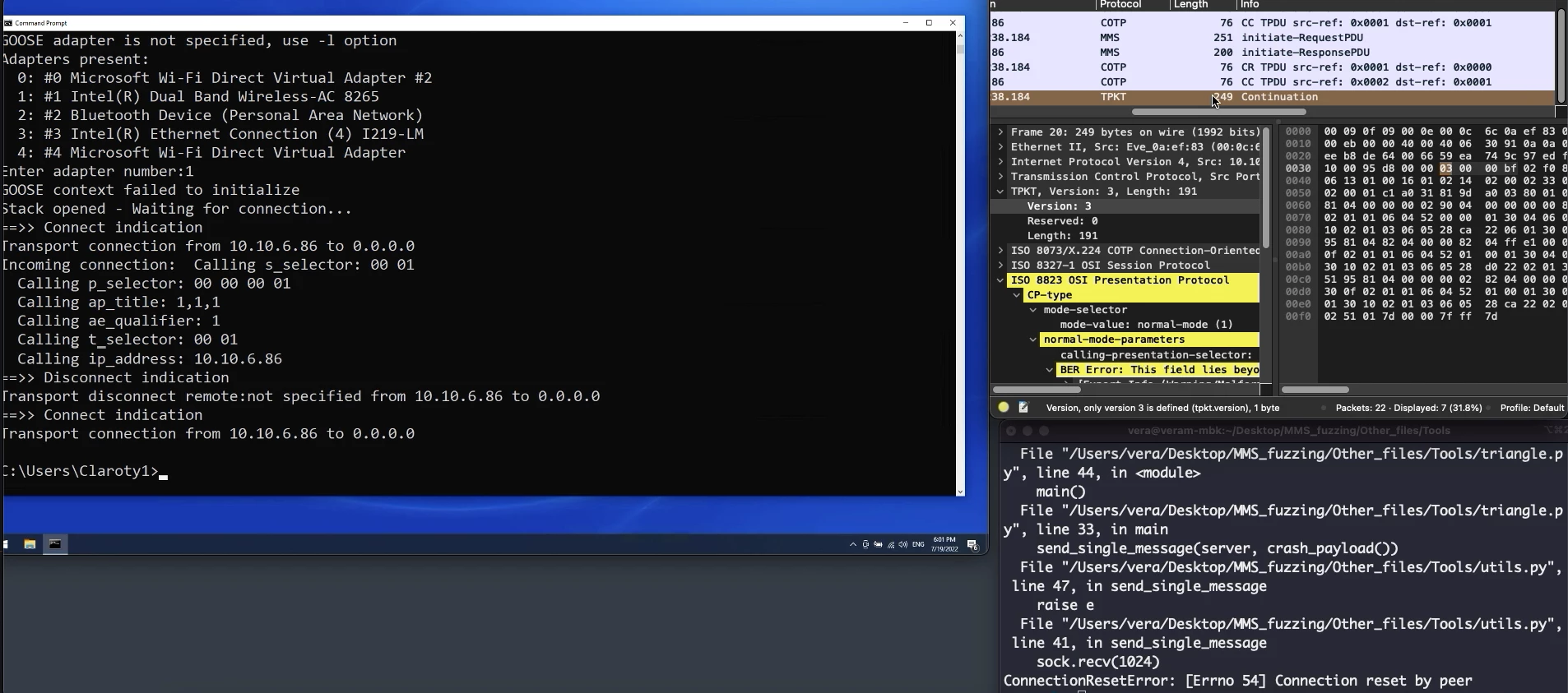 Remember that we talked about the advantages of running a fuzzer when looking for vulnerabilities in multiple protocol implementations? While fuzzing the open-source libiec61850 library, the AFL generated multiple corpuses (input payloads) that now can be tested against other MMS implementations: