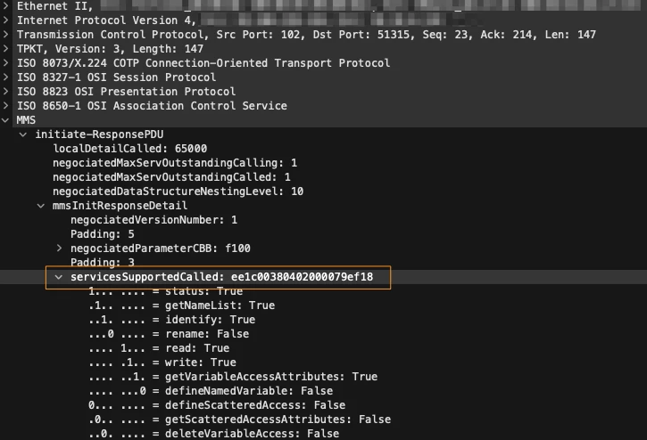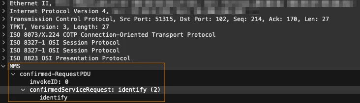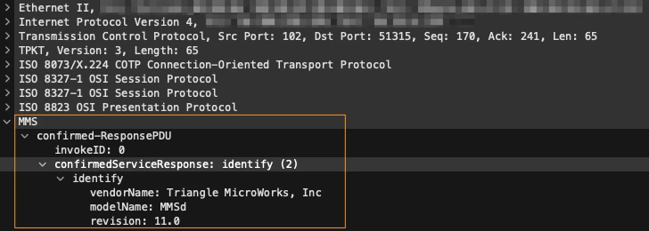 Now we can write a simple python code that will send the MMS Initiate Request PDU request to the MMS device, parse the response, and will detect the MMS implementation stack: