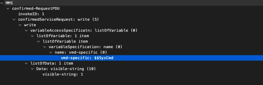 Meaning, by using the special $$SysCmd TAG we can interact with the device with various commands. For example, command 0x01 is Halt System and this is what caused the device to actually Halt (as intended by ABB). The problem of course is that no authentication/authorization was needed to cause this disruption.